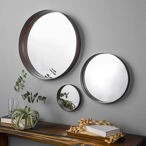 Introducing our Set of 3 Decorative Round Mirrors, each framed with sleek Silver finish metal frames. These mirrors are not just functional but also add a touch of contemporary elegance to any room. Hang them together for a striking focal point or scatter them around to create an illusion of space and light. Perfect for adding depth and style to your living space, bedroom, or hallway. Elevate your décor effortlessly with this versatile and chic mirror set.